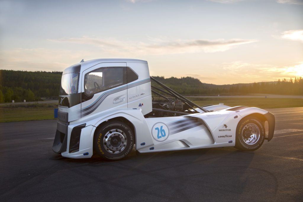 Se trata del camión más rápido del mundo consagrado por batir los récords de velocidad homologados por la FIA en las categorías de 500 y 1.000 metros. El camión fue desarrollado especialmente para este propósito. El récord de velocidad fue supervisado y aprobado por la FIA. El camión recorrió la distancia en ambas direcciones. La velocidad y el tiempo medios se calcularon basándose en estas dos carreras. El récord que la FIA presenta es la velocidad media de las dos carreras. Con una velocidad media de 169 km/h y en un tiempo de 21,29 segundos, el Iron Knight batió el récord mundial de velocidad en la categoría de 1.000 metros con salida de parado. También batió el récord en la categoría de 500 metros, a 131,29 km/h y en 13,71 segundos. A excepción del motor y la caja de cambios I-Shift de doble embrague de serie que constituyen el núcleo del Iron Knight, el resto del camión fue desarrollado por un equipo de expertos de Volvo Trucks que encontró una forma innovadora de fusionar la tecnología con el diseño. Si bien el equipo técnico trabajó con una cadena cinemática basada en la misma unidad que se instala en los Volvo FH, este vehículo es muy especial porque durante el desarrollo se llevó al límite el motor para ofrecer la máxima potencia. Con 2.400 CV, 6.000 Nm de par y un peso de 4,5 toneladas, el Iron Knight tiene una relación potencia-peso superior a 0,5 CV/kg.. El motor montado en el centro es un modelo D13 convencional con modificaciones exteriores para lograr el máximo desempeño: dos entradas de aire con filtros abiertos y cuatro turbocompresores, además de tres intercambiadores de calor refrigerados por agua. La caja de cambios I-Shift de doble embrague mantiene el torque durante los cambios de marcha, cuya única modificación fue realizada en el disco de embrague reforzado para resistir la exigencia de los 6.000Nm de torque. La electrónica se ha reducido al mínimo para quitar peso al vehículo. El software se ha reprogramado para ofrecer un alto rendimiento. La aerodinámica de la cabina, fabricada en fibra de vidrio, se ha optimizado. Las grandes tomas de aire de los faldones suministran al motor aire refrigerante. El chasis está diseñado con refuerzos especiales para mantener en línea todos los componentes al suministrar la máxima potencia. Acelera de 0 a 100km/h en solo 4.6 segundos. El piloto al volante del Iron Knight es el reconocido Boije Ovebrink, que cuenta con más de 30 años de experiencia en carreras de autos y camiones, y quien ha batido el record de velocidad junto a Volvo. Anteriormente, ya había batido cinco récords de velocidad y en 1994 fue campeón europeo en carreras de camiones. “El Iron Knight de Volvo Trucks podría describirse con una sola palabra: perfección. Tiene un diseño impactante y ofrece una potencia insuperable cuando se pisa a fondo el acelerador. Este es el tercer camión que he conducido que bate récords y no se me ocurre ningún otro vehículo que pudiera seguir mejor la estela del Wild Viking y del Mean Green”, comenta Boije Ovebrink.