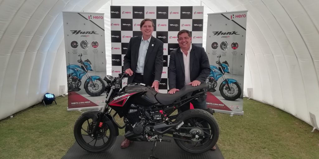 La marca india de motos Hero lanzó al mercado local el modelo insignia dentro de la gama Hunk: la 200 R. La presentación a la prensa y los clientes se concretó en el Golf Club de San Isidro y fue llevada adelante por Francisco Fonseca, director de Hero Latinoamérica y Esteban Casares, Ceo de Hero Argentina. “En el 2020 llegaremos a las 100 millones de unidades producidas en el mundo, seguiremos expandiéndonos en Latinoamérica donde hace cinco años que estamos con presencia en 15 países y donde el mercado argentino juega un rol importante para nosotros” sostuvo Fonseca, cuya sede la tiene en Colombia donde hoy Hero tiene una base industrial y agregó “el año pasado vendimos 50.000 motos en esta región y para el 2019 nos propusimos, dentro lo posible, crecer un 20% por eso seguimos incrementando la gama y ofreciendo productos estratégicos como la Hunk R 200”. Esta motocicleta se trata de la de mayor motorización de toda la línea pues viene equipada con un motor bicilíndrico que ofrece 18,4 HP de potencia y un torque de 17,1 NM a 6500 rpm. Posee horquilla delantera telescópica y suspensión trasera con monoshock regulable en 7 posiciones. Cuenta con reno a disco en las cuatro ruedas, el delantero de 276 mm. con ABS y el trasero es de 220 mm. Su asiento es anatómico angosto, el colín de punta con luces Led, tablero analógico digital, llanta perfil 17” con cubierta trasera 130/70 de agresivo diseño. Los colores disponibles con el heavy Gray, Sports red, Panther Black y Techno Blue. Su precio es de $ 83.900.- Este modelo Hunk 200 R, adelantado al público en el Salón de la Moto de Buenos Aires el año pasado, se suma al porfolio actual de la marca india compuesto por los modelos Hunk y Hunk Sports ambos de 150 cc, la renovada Ignitor de 125 cc y el scooter Dash de 110 cc, disponibles en locales exclusivo de la marca y en concesionarios multimarca. Esteban Casares, Ceo de Hero Argentina, sostuvo que “Desde nuestro desembarco en el mercado local en 2017 hemos ampliado nuestra gama y motorizaciones. Hemos hecho crecer la red de concesionarios e hicimos foco especialmente en la posventa y la atención al cliente. Con la Hunk 200 ofrecemos una solución ideal para la ciudad, ágil, cómoda, con un motor confiable y sobretodo con elementos de seguridad como el BS delantero, a un precio muy competitivo. Como toda la gama de Hero, al nuevo producto lo ofrecemos también con una garantía de 3 años o 30.000 kilómetros”.