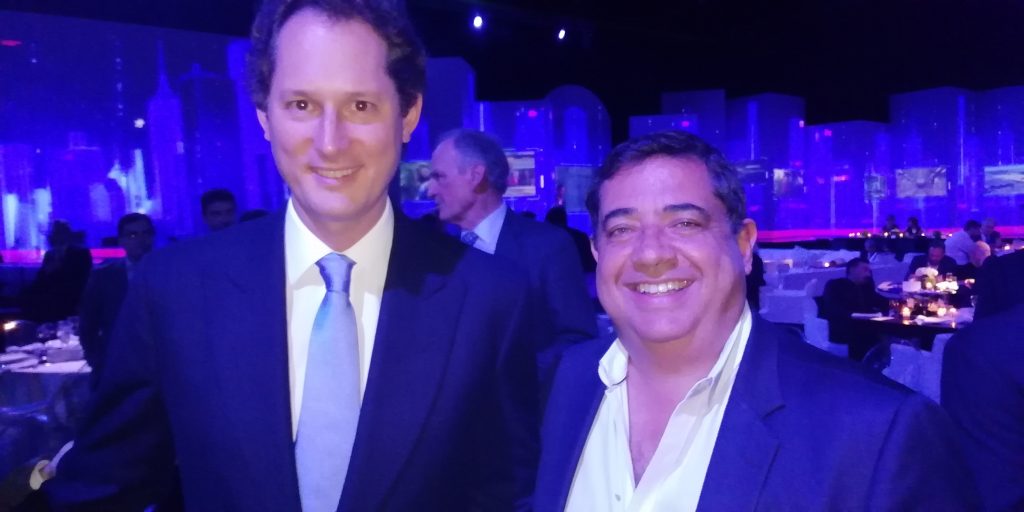 La presencia en la mesa principal fue casi perfecta junto al primer mandatario y su señora Awada estaban John Elkan y Mike Manley, chairman y Ceo de Fiat Chrysler Automobiles (FCA); Antonio Filosa, Ceo FCA Latinoamérica; Cristiano Rattazzi, presidente de FCA Argentina y Martín Zuppi, director general FCA Argentina, sólo faltó el gobernador de Córdoba, Juan Schiaretti, quien no puedo asistir a la cena. Rattazzi fue quien comenzó los discursos y el encargado de mencionar a directivos que mucho tuvieron que ver con la historia de Fiat en Argentina: Giavanni Anielli; Giani Anielli; Oberdan Salustro y Sergio Marchionne y hasta nombró al Lole Reuteman, ex piloto de Ferrari, que no puedo estar presente en el festejo. Por su parte, Macri -que durante la existencia de Sevel también tuvo relación con la marca italiana- recordó que su padre, Franco, le inculcó tres cosas: pasión por el trabajo, por Dios y por Fiat; “a la que también le agregué la pasión por Boca” dijo el presidente de Argentina quien también aprovechó para anunciar que siguen firmes las tratativas para lograr un mercado de libre intercambio con la unión europea. Las palabras de Elkann, Mandely y Filosa sirvieron para reafirmar el compromiso presente y futuro que tiene la empresa italiana con la Argentina donde hoy opera uno de sus centros industriales más modernos en el mundo en el complejo cordobés de Ferreira. Igual que ocurrió con la noche de la presentación del Cronos el año pasado en Córdoba, el festejo del centenario de Fiat volvió a tener como cierre la gran atracción del equipo de bailarines de Nora Godoy a la que se le sumó la vos de la cantante Julia Zenko. Al mismo tiempo, mientras la melodía del tango inundaba a la Rural, Fiat proyectaba imágenes animadas de su centenario sobre tres edificios emblemáticos de Buenos Aires: el Teatro Colon; el Obelisco y la Facultad de Derecho. Hablando de emblema, justo cuando nos estamos yendo de la fiesta nos topamos en la salida con Cristiano Rattazzi quien minutos antes había recordado a los comensales que “de los 100 años de Fiat Argentina había vivido muy de cerca los últimos 70 años de la empresa”. Antes de retirarse le pedimos hacer con él la última foto de este festejo centenario, nada más y nada menos que con el ejecutivo símbolo de Fiat en nuestro país y heredero de sangre de quienes crearon la compañía en Italia. Aprovechamos para agradecerle la invitación a él y a todo Fiat y le trasmito lo contento que nos sentimos por haber sido testigos de una fiesta inolvidable…. el primer centenario de Fiat en Argentina!