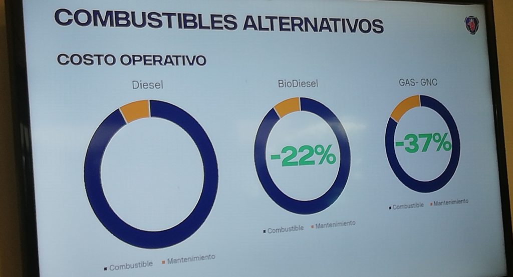 Luego de lanzar en marzo la nueva generación de su gama de camiones y de presentar la semana pasada el primer curso para mujeres conductoras de camiones, Scania volvió a convocar a la prensa para mostrar otra novedad: su bus urbano K280 propulsado 100% a Gas Natural Comprimido en el marco de las pruebas que la compañía viene realizando en materia de movilidad urbana con combustibles alternativos. El bus a GNC se suma a otro bus propulsado a biodiesel que ya se encuentra circulando desde diciembre siendo también la Línea 132, de la empresa Nuevos Rumbos S.A, la encargada de operar ambos colectivos. El encuentro también sirvió para que Andrés Leonard, director general de Scania Argentina, le confirmara a Autoexecutive que la terminal volverá a inyectar, en los próximos días, 10 millones de dólares al mercado del transporte para que los clientes de la empresa puedan financiar la compra de sus camiones y buses. “El crédito es muy importante para la venta de nuestros productos, la primera partida de financiación ya se agotó, ahora vamos por otra gracias a la ayuda de nuestra casa matriz” indicó Leonard quien confirmó que la herramienta financiera será otorgada en pesos con parámetros parecidos a las líneas de créditos anteriores, es decir, se podrá financiar el 60% del valor de la unidad a 24, 36 y, en algún caso a 48 meses, sólo resta por conocer la tasa final que se estima estará en alrededor del 39%. Respeto al bus a GNC presentado por la empresa está equipado con un motor Scania 9 litros, cinco cilindros y una potencia de 280 cv, lo que otorga un alto torque a bajas revoluciones y asegura un menor consumo de combustible. El nivel de ruido emitido es considerablemente más bajo, al mismo tiempo que otorga más confort, robustez, durabilidad y una autonomía de 290 kilómetros. “Los buses urbanos Scania son pensados como soluciones durables, de bajo costo operativo, y amigables con el medio ambiente. Es por eso que esta iniciativa demuestra una vez más que nos encontramos liderando el cambio hacia un sistema de transporte sustentable”, comentó Andrés Leonard. Scania ha trabajado en el desarrollo de productos -camiones, buses y motores industriales- propulsados a gas desde hace varios años. En Colombia, recientemente se han entregado casi mil unidades Euro 6 a gas para el sistema BRT de la ciudad de Bogotá, denominado Transmilenio. Es por ello que se ha desarrollado un motor de ciclo Otto fabricado específicamente para este tipo de combustible. “Venimos trabajando desde hace tiempo con este tipo de pruebas en buses urbanos y podemos afirmar que el costo operativo de los buses a GNC, en comparación a los diesel, es un 37% menor. Ofrecemos una solución sustentable y con el menor costo operativo” agregó por su parte Jorge Vittar, gerente de Buses de Scania Argentina. De acuerdo a la charla informativa brindada por la compañía en el predio de Fadeeac en Escobar, se estima que en el 2030, el 50% de los buses circularán propulsados con GNC.