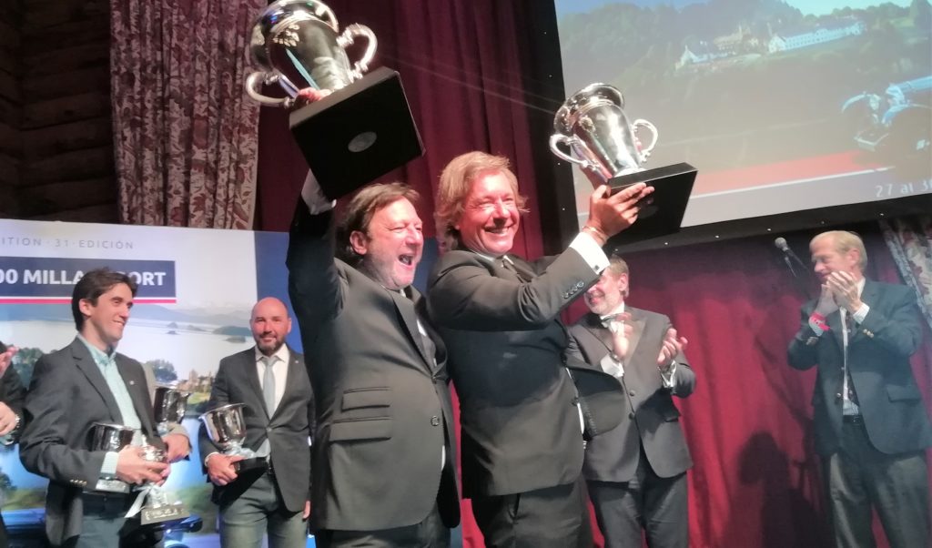 Luego de la dura e intensa segunda jornada llegó el turno de la tercera y última etapa de las 1000 Milllas Sport que debió cambiar el recorrido a último momento ante el alerta de posibles manifestaciones en la ruta que originalmente tenía como destino intermedio El Bolson. A pesar de las modificaciones en los caminos se mantuvieron los 380 kms previstos por los organizadores y, esta vez, en gran parte del circuito, se condujo bajo los rayos de un sol patagónico. Al mediodía, en pleno almuerzo en el Complejo Los Baqueanos, le pido al empresario Hugo Pulenta (el hombre que importa los Porsche en la Argentina) que se fije en su celular las posiciones online de la prueba y me confirma que con el AC 16/80 la dupla Daniel Erejemovich y Gustavo Llanos pasaban a ser los punteros luego de una sorprendente remontada iniciada durante el segundo día. A esta altura de la competencia este binomio se perfilaba como campeón nuevamente de las 1000 Millas Sport…. era el último instante para conocer en los celulares el resultado parcial de la prueba antes de develar a los triunfadores en el gran encuentro de la noche con todos los participantes. Tras el descanso de una hora vendría el último tramo de la competencia que incluyó pruebas en el centro tecnológico del INVAP hasta la llegada nuevamente en el Centro Cívico de esta ciudad rionegrina donde los competidores volvieron a reencontrarse con el fervor del público. Serían casi cuatro horas y seis pruebas puntuales finales, las que cambiarían la historia de esta 31° edición de la prestigiosa carrera. La tradicional Cena de Gala reveló finalmente a los flamantes campeones con un apretado desenlace: Alejandro López y Gabriel Gourovich (foto a paertura) a bordo de un Delaye de preguerra se coronarían este año, por primera vez, como flamantes reyes de las 1000 Millas Sport con sólo un margen de 3.22 puntos de diferencia delante de sus seguidores. Un merecido e indiscutido triunfo luego de liderar las tres etapas de está magnifica competencia de los autos clásicos sport organizada de manera impecable por el Club de Automóviles Sport que, como nunca en su trayectoria, tuvo un disputadísimo final. En tercer lugar, completando el podio, se ubicaron Leonardo Zerbini y Carlos Tesán a bordo de un Porsche 911 T que -con este resultado- les sirvió para consagrarse campeones de la Triple Corona 2019 gracias al promedio/performance que arrojó su participación en el Rally de las Bodegas, el Rally de la Montaña y en estas 1000 Millas Sport, las tres carreras que comparten un mismo espíritu de la actividad del automovilismo histórico de la Argentina. Fin de la 31° edición, los nuevos aires de las Mil Millas también trajeron a nuevos monarcas campeones…. chapeaux!!