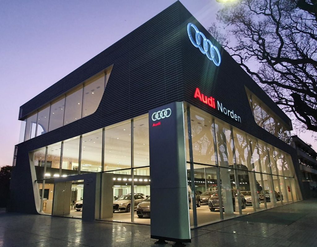 Con una gran fiesta de apertura, Audi Argentina inauguró la «terminal concept» más grande de Sudamérica en San Isidro. Se trata de Norden perteneciente al megagrupo Russoniello. Durante el encuentro que contó con la participación del conjunto musical Los Totora, estuvieron presentes Guillermo Fadda, vicepresidente ventas y marketing Grupo VW Argentina; Conrado Wittstatt, gerente general de Audi Argentina; Alberto Russoniello, presidente del Grupo que lleva su apellido, junto a su familia; ejecutivos del Grupo VW; prensa especializada e invitados especiales. Luego de tres años de intenso trabajo la concesionaria integral ubicada sobre Avda del Libertador 15154 cuenta con una superficie total cubierta de 6.500 mts² con cinco niveles dedicados a show room de ventas, posventa y administración. En la planta baja posee un salón de ventas con 16 vehículos en exhibición y en el primer piso hay otro salón también con la misma cantidad de unidades, en este caso destinada a los autos Sport y a línea S de la marca de los anillos. La estructura edilicia está dotada de una arquitectura excepcional y novedosa. Abre un nuevo camino de relación entre el cliente y la marca. El lenguaje empleado en su construcción está basado en un concepto modular que permite una mayor flexibilidad y adaptabilidad de las instalaciones para prestar un servicio de atención ‘Premium’ a sus clientes. Audi desarrolla este concepto de concesionario en las principales ciudades de todo el mundo. Con él busca ofrecer a sus clientes un nuevo modo de contacto con la marca, integrado en el entorno urbano y amigable con el medio ambiente. El edificio es inteligente, está construido con sistema de reutilización de agua de lluvia y está diseñado con estructura integral para pantallas de almacenamiento de energía solar. Las instalaciones están preparadas para recibir y comercializar los nuevos vehículos eléctricos de la marca alemana. Posee sala digital con configurador de todos los modelos Audi; sector exclusivo para exhibición de vehículos usados premium; un espacio exclusivo estilo “Lounge” para que los clientes puedan relajarse y disfrutar de la experiencia Audi, salas de reuniones y capacitación equipadas con tecnología de vanguardia, sala de entrega de vehículos 0 km con cielorraso transiluminado; y una sala de espera exclusiva balconeando el área de posventa.