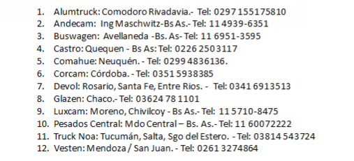 Teléfonos de Emergencia de Concesionarios VW Camiones y Buses
