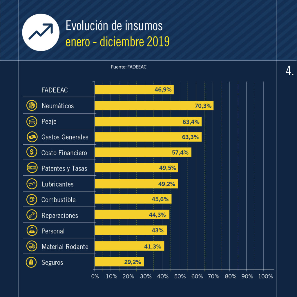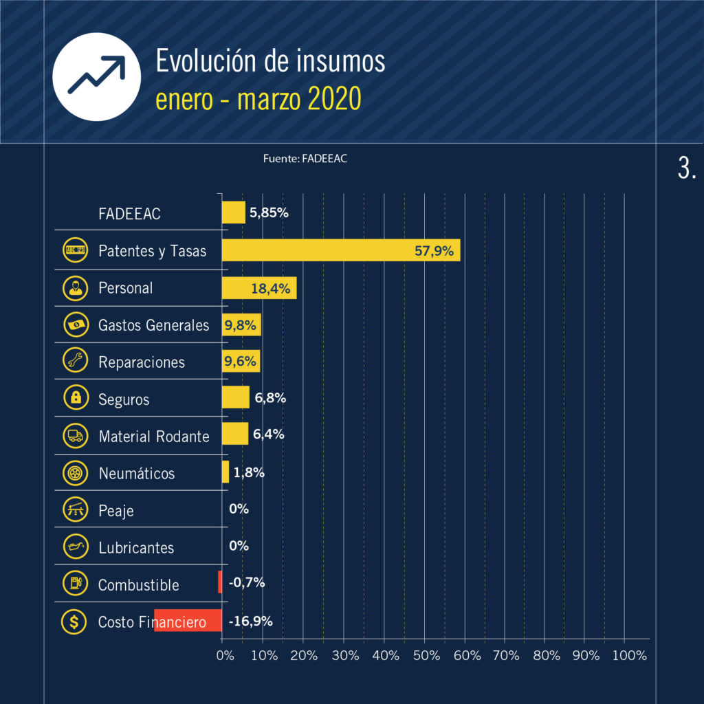 Poner en marcha un camión en las rutas del país costó en marzo un 0.05% más que el mes anterior, en el marco de las medidas nacionales para contener el Coronavirus. Así lo señaló el Índice de Costos de la Federación Argentina de Entidades Empresarias del Autotransporte de Cargas (Fadeeac). Como eslabón esencial para el abastecimiento de todos los argentinos, el sector continuó su trabajo durante el aislamiento social, preventivo y obligatorio, pero igual las empresas registraron consecuencias comerciales. Es que la parálisis en diversos segmentos de la economía afectó, en menor o mayor medida, a numerosas ramas de la actividad, incluso cuando el autotransporte de cargas mantuvo la libre circulación en el territorio nacional debido su rol central para el abastecimiento del país, sobre todo en un momento crítico. Con el valor de marzo, registrado tras alzas como del 3.6% en febrero, el incremento acumulado en el primer trimestre asciende a 5.85%. En los últimos doce meses la variación acumulada se ubica en el 39.1%. La suba de los costos en el tercer mes del año se relaciona con ligeros aumentos en los rubros ligados a los equipos, como material rodante (1.28%), reparaciones (1.25%) y neumáticos (0.69%), en tanto que los gastos generales aumentaron 0.84%. Como contrapartida, se registra un descenso marginal en combustible (-0.01%) y una baja del costo financiero (-5%). El estudio, realizado por el departamento de Estudios Económicos y Costos de FADEEAC, mide 11 rubros que impactan directamente en los costos de las empresas de transporte de cargas de todo el país, y es referencia en buena medida para la fijación o ajuste de las tarifas del sector. “No sé si todo el mundo entiende la importancia de que lleguen los camiones con mercadería a las provincias. Estamos trabajando como un gran equipo con los transportistas de todo el país, el Gobierno, el gremio y todos los actores para salir adelante”, enfatizó Hugo Bauza, presidente de Faddeac. La presente emergencia sanitaria, con su impacto sobre la economía en general y el sector en particular, abre interrogantes e incertidumbre en el sentido de la afectación económica en las estructuras de las empresas, tanto por los sobrecostos asociados a la mayor precaución y cuidado sanitario, como por los obligados cambios en la logística que implican una menor actividad. Aun en un marco donde se prevé menor inflación tras los muy altos niveles de 2018 y 2019, la carga de los costos y la presión impositiva -del orden del 40% de la tarifa final- es pesada para el sector. “Así y todo, el autotransporte de cargas sale a la ruta para garantizar el abastecimiento de todas las familias argentinas” dice el comunicado de Fadeeac.