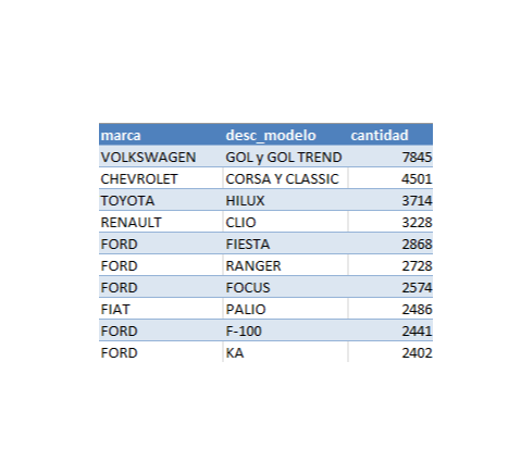 Los 10 Modelos de Vehículos Usados más Vendidos
