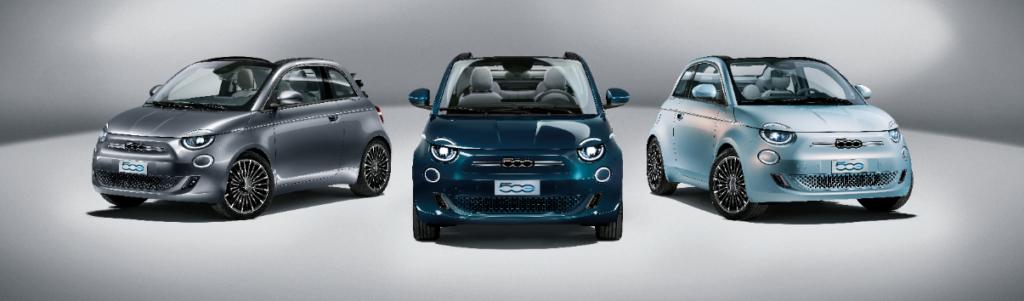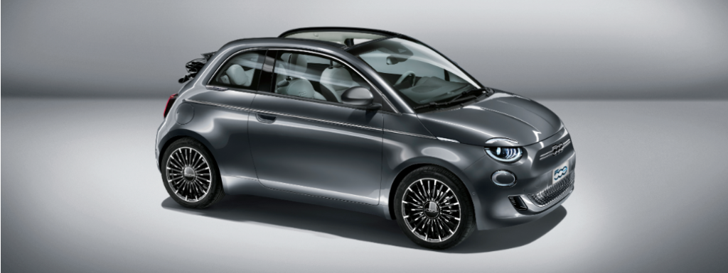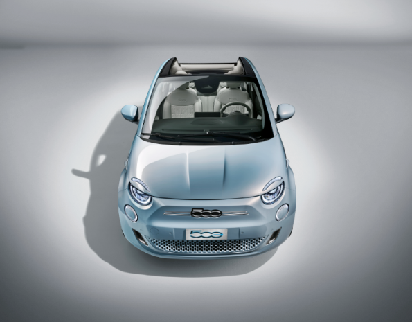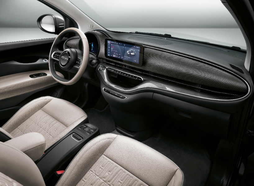 El Nuevo 500 «la Prima» descapotable es el primer convertible de cuatro plazas y cero emisiones de CO2. Todo abierto, todo eléctrico y todo silencioso. Como icono de la Dolce Vita, solo podía renacer de esta manera, para así liberar todo su encanto. Es claramente un 500 y, como tal, no puede sino encarnar el estilo y la atención al detalle. Empezando por la capota Monogram FIAT, pasando por los colores disponibles (Mineral Grey (metalizado) que evoca la Tierra, Ocean Green (metalizado) que representa el mar y Celestial Blue (tricapa) como homenaje al cielo), hasta los faros Full LED, la tapicería de piel ecológica, las llantas de 43 cm (17″) diamantadas, las aplicaciones cromadas en las ventanillas y el lateral, y el cargador rápido de hasta 85 kW de serie. En cuanto a los contenidos, «la Prima» lleva de serie algunos de los sistemas ADAS más avanzados: Control de crucero adaptativo inteligente (iACC) y centrado de carril; reconocimiento de señales de tráfico, freno de emergencia autónomo con reconocimiento de peatones y ciclistas; asistente de velocidad inteligente y control de carril. También añadido más tecnología nueva, incluyendo: Cámara de visión trasera de alta resolución; sensores de luz y luces de carretera automáticas; llamada de emergencia; freno de estacionamiento electrónico