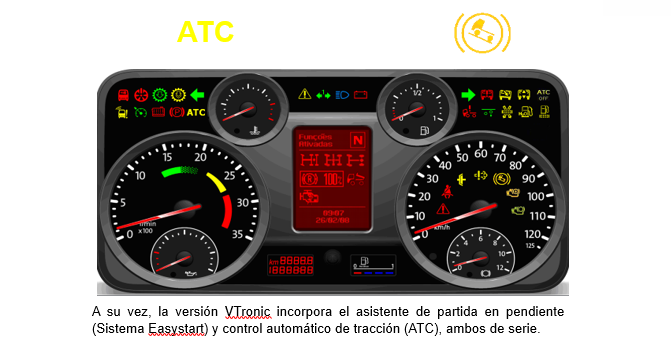 El 25.360 VTronic, a su vez se distingue por configurarse de serie con los asientos de tela hidrorepelente con refuerzos en las zonas de mayor roce y paragolpes y estribos del mismo color que la cabina. El tablero se destaca por brindar toda la información necesaria al conductor con el fin de tener el control completo del vehículo y permitirle así tomar decisiones en tiempo y forma para optimizar el desempeño del camión. El mismo cuenta con computadora de abordo, la cual indica los distintos componentes y sistemas que están activados, consumos parciales, promedio y totales de combustible, nivel de carga de batería, presión de circuitos de aire, entre otros tantos. También se destacan en el tablero todos los testigos diseñados específicamente en forma y color para facilitarle al conductor una intuitiva interpretación. Además el nivel de equipamiento se completa con: Asiento de conductor con suspensión neumática, y múltiples regulaciones (Longitudinal, en altura e inclinación de respaldo), con reposacabezas y cinturón de seguridad de 3 puntos; asiento de acompañante múltiple regulable (Longitudinal e inclinación de respaldo), con reposacabezas y cinturón de seguridad de 3 puntos; columna de dirección regulable en altura y profundidad; calefacción y aire acondicionado; radio con AM / FM, MP3, USB, Bluetooth; visera parasol externa; computadora de abordo con control de Velocidad Crucero y panel de instrumentos color y multifunción; levantacristales eléctricos y cierre centralizado de puertas; espejos retrovisores con eléctricos, Bi-partido (Principal + Gran Angular) y espejo de maniobra y tecla adicional para accionamiento de toma de fuerza. Esta versión también presenta riel para cortinas, consola de techo, múltiples portaobjetos, cucheta con espacio bajo la misma de guardado, escotilla de techo y suspensión de cabina, mecánica e independiente de 4 puntos.