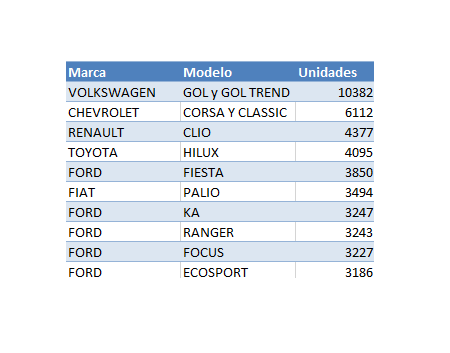 Los Autos Usados más Vendidos en Septiembre