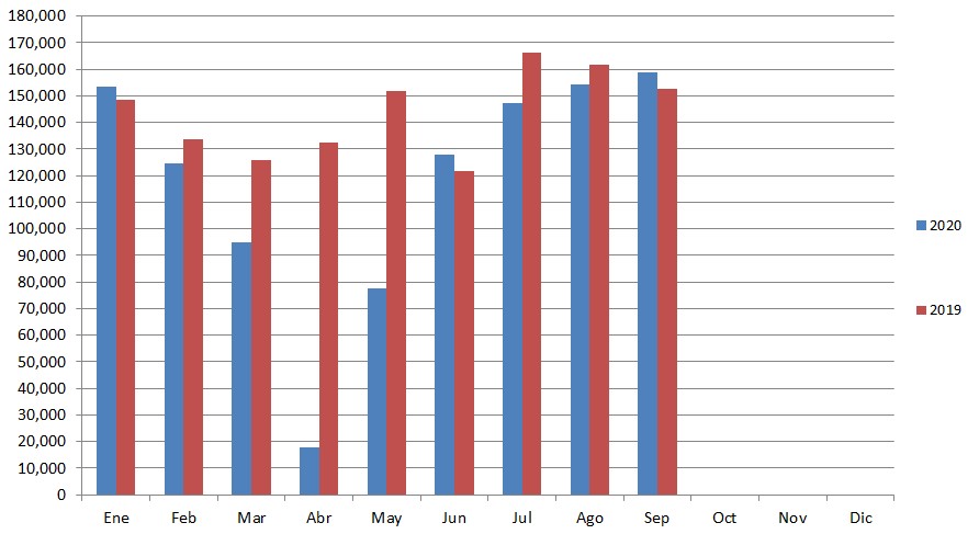 La Cámara del Comercio Automotor (CCA) informó que en septiembre se vendieron 158.941 unidades de autos usados, lo que representó una suba del 3,06% comparado con el mes de agosto cuando se concretaron 154.216 operaciones y otra suba del 4,18% contra las 152.563 transacciones de igual mes del año pasado. De esta manera en durante 9 meses que van de este año se llevan vendidas 1.057.320 unidades de vehículos de ocasión, un 18,33% menos que en igual período de 2019 cuando se comercializaron 1.294.701 vehículos. “Si bien mes tras mes el mercado de autos usados viene marcando un repunte en sus ventas, podemos confirmar que las ventas de usados del año no superarán el 1.400.000 vehículos, es decir cerraremos con un 20% por debajo del mercado de 2019. Y esto se da porque fruto de la pandemia y el aislamiento durante en los meses de marzo, abril y mayo los show romos de ventas estuvieron en gran parte cerrados y se perdieron de comercializar cerca de 230.000 unidades, promedio mensual tradicional para esos tres meses. Si las ventas hubieran seguido su ritmo normal el volumen a comercializar durante el año estaría en los mismos números de año pasado: 1.700.000 unidades” sostiene el presidente de la CCA, Alberto Príncipe, quien agrega que “Un relevamiento hecho por nuestra institución a nivel país, muestra que pese al aumento en las ventas se está produciendo un amecetamiento en el mercado. No hay tantas consultas, tanto en los locales como vía online. Ese furor por la compra ha bajado sobre todo en el interior que era el que estaba traccionando. En contraposición el AMBA está volviendo, de a poco, a retomar el ritmo. Todo esto con la problemática que se agudiza a medida que pasan los meses por la falta de stocks en las agencias. Los mismos están en el límite y no hay reposición. La falta de entrega de autos 0km y particulares que piden lo que no valenlos autos, hacen un combo demasiado preocupante para el sector.” Respecto al mix de ventas el directivo sostuvo que “El púbico sigue apuntando a la compra de autos seminuevos, pero a modelos específicos que van desde 2016 en adelante. La rentabilidad es otro factor que preocupa: cuando se vende un auto no sabemos a qué precio lo vamos a reponer. El mercado está muy incierto pese al movimiento que se está teniendo”.