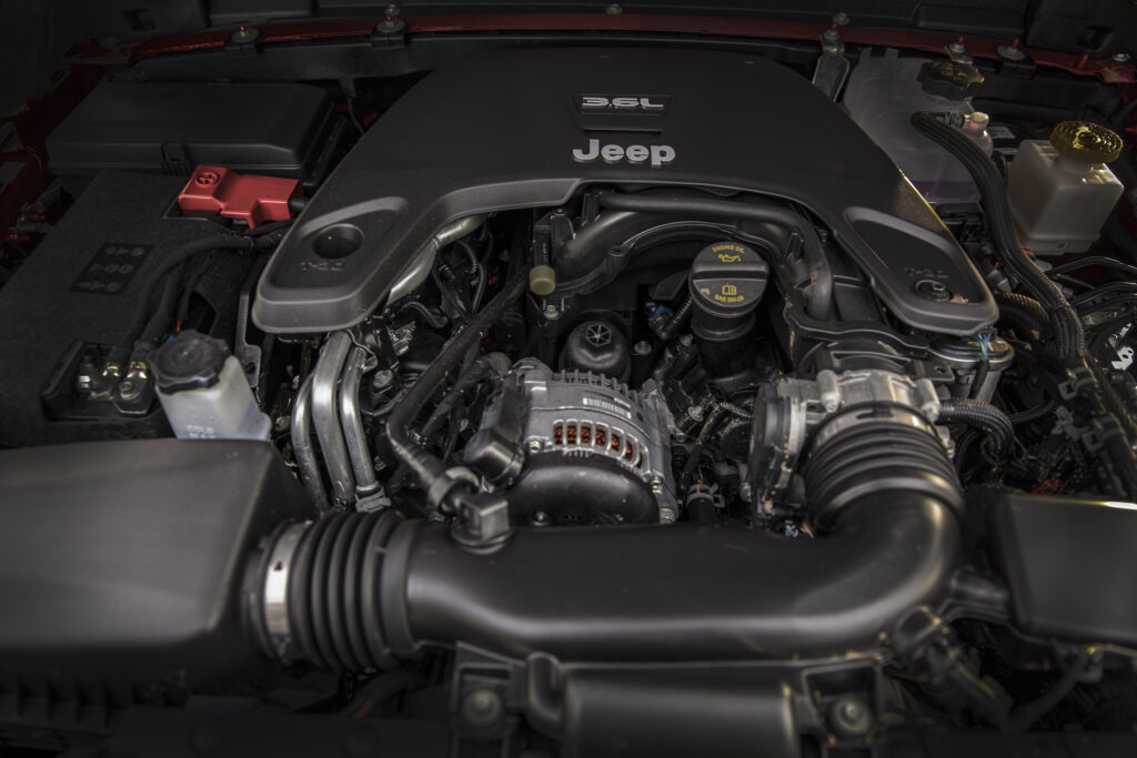 El Jeep Gladiator es impulsado por un único motor: el conocido Pentastar V-6 de 3,6 litros que entrega 285 caballos de potencia y 353 Nm de torque acoplado a una transmisión automática de ocho velocidades que viene de serie en todos los modelos, y que cuenta con el sistema Start Stop (ESS, por sus siglas en inglés) de serie. Está diseñado para proporcionar un amplio rango de torque, con un especial énfasis en el torque a bajas revoluciones, aspecto crucial en conducción todoterreno extrema. El Jeep Gladiator se beneficia del reputado torque a bajas revoluciones de este V-6, algo muy necesario en recorridos 4×4 o cuando las condiciones del terreno se tornan exigentes (por ejemplo en operaciones de remolque o de transporte de carga pesada). La transmisión es automática de ocho velocidades que le permite optimizar su rendimiento en manejo off-road y entregar la potencia de una manera suave y eficiente a velocidades de autopista. Un juego exclusivo de dos relaciones de sobremarcha (overdrive) mejoran la economía de combustible en la autopista y reducen los niveles globales de Ruido, Vibración y Dureza (NVH, por sus siglas en inglés). Especialmente adaptada a los requerimientos del Gladiator Rubicon, la transmisión de ocho velocidades proporciona una relación de ascenso (crawl ratio) de 77.2:1. El rendimiento 4×4 y la capacidad de remolque se benefician de una relación de la primera marcha de 4.7:1 junto con una relación final de la transmisión de 4.1:1.
