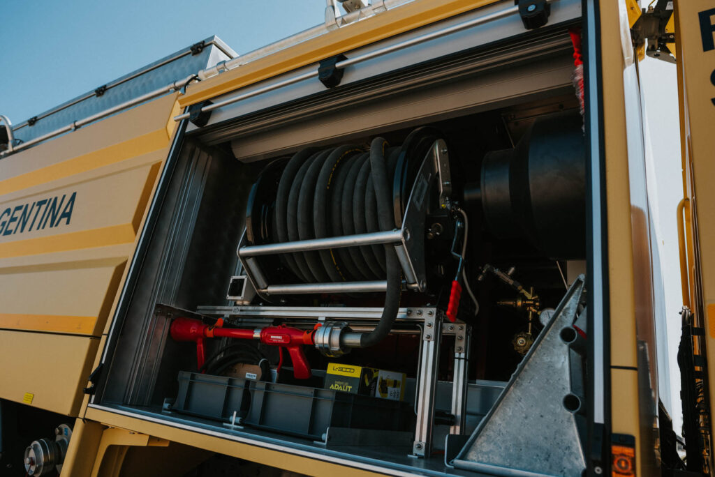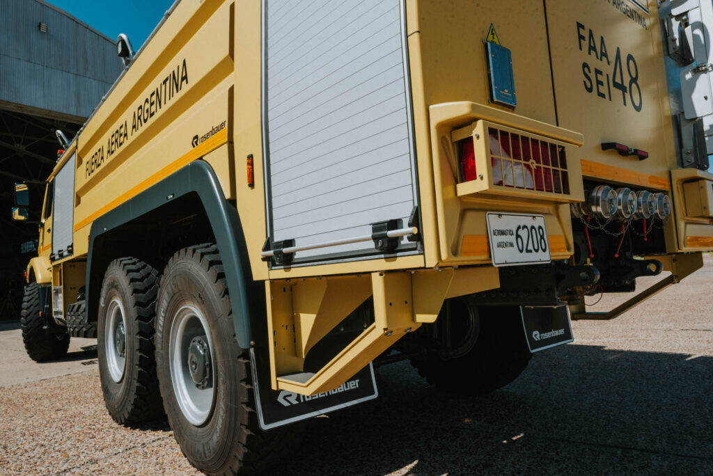 La Fuerza Aérea Argentina incorporó tres camiones Zetros 2733 de Mercedes-Benz a su flota de vehículos. Las unidades cuentan con motor OM 926 LA, fórmula de tracción 6×6 y equipamiento para extinción de incendios aeroportuarios, forestales y trabajos de rescate. Fueron carrozados en España, equipados por la empresa Rosenbauer y, a su vez, la compañía Metalúrgica ARD, representante oficial de la firma Rosenbauer en Argentina -que carroza autobombas- se encargó del alistamiento previo a la entrega y la instalación de accesorios adicionales. Las décadas de experiencia en todoterrenos y la innovadora tecnología Mercedes-Benz se combinan en un camión moderno diseñado para moverse en zonas donde muchas veces el camino no existe. El Zetros es sinónimo de resistencia. La robustez y la fiabilidad son atributos que priman cuando se trata de realizar tareas en condiciones extremas ya sean por zonas anegadas, barro o terrenos pedregosos, por el desierto o por las regiones más frías. Es el camión ideal para ámbitos de uso variados: construcción, exploración, lucha contra incendios, minería cielo abierto, entre otros. Su concepción como vehículo todoterreno se basa en la interacción perfecta de los componentes del tren de rodaje, que garantizan una conducción segura y ágil sobre cualquier superficie. Su movilidad es sobresaliente gracias al concepto de cabina con capó y a la distribución equilibrada de la carga entre los ejes. Su estructura frontal asume una importante función de protección, evitando daños y suciedad en el parabrisas. Además, cuenta con una óptima transmisión de la fuerza gracias a su cambio automático Allison con convertidor de par que proporciona un avance perfecto. Su tecnología robusta y potente lo transforman en el vehículo ideal para ser utilizado, alrededor del mundo, en las aplicaciones más complejas. En trayectos duros y con climatología adversa, ofrece una impecable respuesta en su manejo. Cuenta con frenos de tambor de escaso desgaste y robustos ejes reductores de acero fundido protegidos contra la suciedad. En el interior cuenta con asientos individuales regulables que cumplen todas las exigencias, espacio suficiente para una dotación de 3 personas y su equipo de trabajo. El diseño del habitáculo es práctico, resistente y fácil de limpiar. La facilidad de mantenimiento del Zetros lo convierte en un solucionador de problemas indestructible.