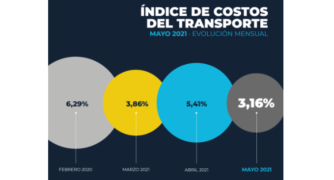 El Índice de Costos de Transporte de FADEEAC (ICTF) volvió a exhibir en mayo otro incremento, que fue del 3.16%. Con esta suba, en los últimos doce meses transportar mercadería por camión aumentó el 55,6%, y un 26% en lo que va de 2021. En mayo, como sucede desde agosto del año pasado, la mayoría de los rubros presentaron subas. En primer término, el gasoil vuelve a aumentar un 5.22%, el décimo ajuste consecutivo desde agosto de 2020, tanto en los segmentos mayorista como minorista. Con esta suba, el aumento promedio del gasoil alcanza en los primeros cinco meses del año un 38%, tras haberse incrementado 45.5% en 2019 y 77% en 2018. Por su parte, el rubro lubricantes trepó un 4.5% tras fuertes ajustes en marzo y abril, con lo que alcanza el 46% en el transcurso del año. “Es un momento complejo para nuestra actividad porque somos esenciales, pero salir a la ruta nos representa un aumento constante, que no siempre se puede trasladar a tarifas. El transporte de cargas no es formador de precios sino que recibe la carga pasada de los aumentos mensuales”, enfatizó Roberto Guarnieri, presidente de la Federación Argentina de Entidades Empresarias del Autotransporte de Cargas (FADEEAC). También se registraron aumentos en los costos de los equipos e insumos vinculados, sobre todo en Neumáticos (6.68%), Seguros (3%) y, en menor medida, Material Rodante (0.86%) y Reparaciones (0.72%), en el marco de la política de minidevaluaciones del tipo de cambio oficial y la continuidad de restricciones cambiarias y de importaciones. El incremento en Neumáticos alcanza en el año el 36% luego de liderar los incrementos de los rubros que componen el Índice de Costos en 2020 (71%) y 2019 (70%). Finalmente, Gastos Generales que refleja, al igual que en abril, los aumentos de servicios públicos luego de dos años de congelamiento, se incrementó un 7,33%, en tanto que el resto de los rubros (Personal, Patentes, Peajes), con excepción del costo financiero (3.05%), no sufrieron modificaciones en torno al mes anterior.vEl estudio, realizado por el Departamento de Estudios Económicos y Costos de FADEEAC, mide 11 rubros que impactan directamente en los costos de las empresas de transporte de cargas de todo el país, y es referencia para la fijación o ajuste de las tarifas del sector.