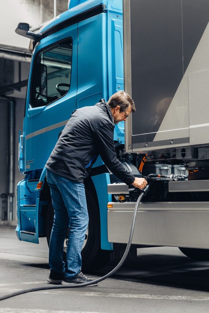 Mercedes-Benz Trucks concretó el estreno mundial del eActros, el primer camión eléctrico producido en serie por la marca de la estella. Así la compañía, ingresa en una nueva era y, al mismo tiempo, destaca su deseo de lograr un transporte por ruta sin emisiones. Está previsto que el modelo de serie del eActros salga de la línea de producción en la planta de Wörth (Alemania) durante este año. El eActros estará disponible primero en Europa en dos versiones con tres o cuatro baterías. Cada una de estas potentes y especiales baterías de iones de litio tiene una capacidad de aproximadamente 105 kWh, lo que da como resultado una suma total de alrededor de 315y 420 kWh. Estas potencias permiten que el eActros cuente con una autonomía de hasta 400 kilómetros, aunque el alcance exacto puede variar según la topografía, el comportamiento del conductor, la temperatura exterior, la carga y la carrocería, entre otros factores. Las características del eActros lo convierten en un camión pesado para distribución y servicios en áreas urbanas. Está previsto que la carga completa de la batería se realice durante la noche. Además, se pueden realizar cargas de oportunidad parciales cuando el vehículo está estacionado temporalmente y también, por ejemplo, cuando la mercadería se descarga en destino. El eActros cuenta con la carga de batería en zona cercana a la cabina. La carga de las baterías tarda entre 30 y 90 minutos.