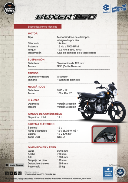 Ficha Técnica de la Bajaj Boxer 150