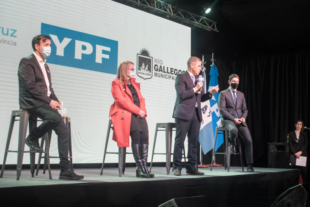 La gobernadora de la provincia de Santa Cruz, Alicia Kirchner, el intendente de Río Gallegos, Pablo Grasso, y el presidente de YPF, Pablo González, anunciaron la construcción de una estación del futuro en Río Gallegos en el marco de un ambicioso proyecto de la compañía para transformar su red de estaciones en los próximos 5 años. La gobernadora, Alicia Kirchner, afirmó durante el acto: “Estaba convencida de que se iba a poder articular un proyecto que nos permita mirar el horizonte. Quiero agradecer a YPF por los proyectos que lleva adelante en Santa Cruz que permitan aumentar la producción y dar más empleo”. El intendente de Río Gallegos, Pablo Grasso, agradeció al presidente de YPF “porque este proyecto fue hecho en conjunto y con la voluntad de modernizar algunos espacios de nuestra ciudad. Quiero agradecer el compromiso de YPF y del ACA (Automóvil Club Argentino) por el trabajo compartido”. “Esta estación va a ser inaugurada en el marco del centenario de YPF. Estamos muy contentos de estar acá, del trabajo conjunto que realizamos al Municipio, esta estación será un emblema en la ciudad”, afirmó Sergio Affronti, CEO de YPF. Por último, el presidente de YPF, Pablo González, destacó los proyectos que la compañía tiene en la provincia. “Santa Cruz es el corazón del desarrolló de YPF en materia de petróleo y gas. Buscamos modificar los últimos cuatro años en donde cayó la inversión, la producción y las reservas. Hoy estamos en nuevo un punto de inflexión y los proyectos a futuro tienen todos que ver con generar más inversión”. Respecto a la estación de servicio que se va a construir, consideró: “Hoy podemos decir con orgullo que no solo venimos a presentar una estación, estamos acá para decirle a Río Gallegos que estamos acompañando obras para mejorar nuestra ciudad”. El acto se realizó en la estación YPF ACA de Río Gallegos y también contó con la presencia del secretario general del Sindicato del Personal Jerárquico y Profesional del Petróleo y Gas Privado de la Patagonia Austral, José Lludgar; el vicepresidente Dowstream YPF, Mauricio Martín y el gerente de Asuntos Externos de la Regional Sur de YPF, Matías Bezi; entre otros.