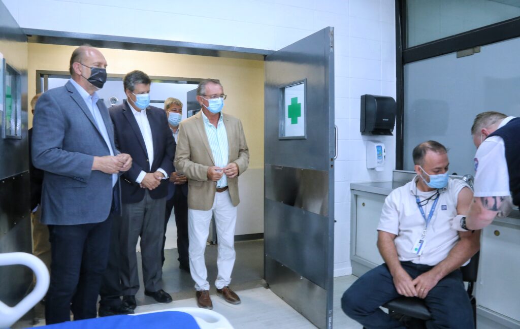 La empresa General Motors recibió la visita del gobernador de Santa Fe, Omar Perotti, en sus instalaciones del parque industrial que la automotriz tiene en Alvear con motivo de la habilitación del Servicio Médico de la empresa como Vacunatorio Oficial de la provincia. Estuvo acompañado por los funcionarios de la provincia Daniel Costamagna, ministro de Producción, Ciencia y Tecnología, Claudio Mossuz, secretario de Industria, y Soledad Guerrero, coordinadora del Programa de Inmunizaciones de la provincia. Con el objetivo de acompañar la campaña que impulsa el Ministerio de Salud de la Provincia, y en línea con el compromiso de garantizar la seguridad de sus empleados y toda su cadena de valor, los empleados de General Motors pueden vacunarse en las instalaciones del Servicio Médico de la compañía, certificado por el Ministerio de Salud de la Provincia de Santa Fe. Así, se convierte en la primera terminal que puede iniciar y/o completar los esquemas de vacunación contra el COVID-19 de sus empleados. «En General Motors la salud y seguridad de todos nuestros colaboradores es prioridad en el mundo. Estamos plenamente comprometidos en colaborar en la lucha contra la pandemia causada por el COVID-19. Es por eso que celebramos que nuestro Servicio Médico haya sido elegido por el gobierno de la provincia de Santa Fe como Centro Vacunatorio Oficial para la aplicación de las vacunas necesarias acordes al calendario propuesto por el Ministerio de Salud de la provincia”, afirmó el doctor Gabriel Conti, jefe del Servicio Médico de GM. Soledad Guerrero, en representación de la ministra de salud, Sonia Martorano, comentó que “el gobierno provincial tuvo la decisión política de descentralizar la vacuna y convocar a las empresas para formar parte de la vacunación. Es un hecho trascendental, dado que la mejor vacuna es la que está colocada, y esto otorga mayor accesibilidad”. El gobernador y su comitiva fueron recibidos por Federico Ovejero, vicepresidente de GM Argentina, Uruguay y Paraguay y Claudio Vulcano, director de manufactura del Complejo Industrial de GM Sudamérica en Argentina, situado en la localidad de Alvear, Rosario, provincia de Santa Fe. Allí se produce para Argentina y la región el modelo Chevrolet Cruze (en versiones de carrocería sedán y 5 puertas) y el moderno motor turbo con que se equipa a estos vehículos.