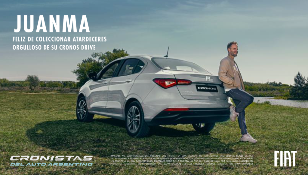 Fiat, una marca del grupo Stellantis, lanzó su nueva campaña de comunicación denominada “Cronistas del Auto Argentino” que cuenta a través de sus dueños reales lo que significa tener el sedán más elegido de Sudamérica, el Fiat Cronos. Desde hace 33 meses consecutivos que el Fiat Cronos se consagra como el auto más elegido en la Argentina. Durante este periodo, la marca realizó diferentes campañas destacando su liderazgo en el mercado, su innovación tecnológica y su fabricación nacional. Pero esta vez decidió dar un paso más en su estrategia de comunicación y recurrir a quienes mejor conocen el Cronos: sus usuarios. Así fue como se inició una búsqueda de propietarios de Cronos a través de concesionarios Fiat, pidiéndoles que compartan sus experiencias personales con el vehículo. Luego de recibir testimonios de todo el país, se eligió a un grupo de ellos a los que se los llamó “Cronistas del Auto Argentino”. Dueños reales que se convirtieron en protagonistas de una campaña publicitaria y que nos cuentan, de primera mano, lo que es tener un Cronos. Con esta campaña, la marca busca mostrar los atributos del Cronos, pero desde una nueva perspectiva, poniendo el foco en el lado más humano de tener un auto. “Cronistas del Auto Argentino” busca mostrar cómo sus propietarios conectan con el vehículo y cómo lo disfrutan, exponiendo esos momentos cotidianos que forjan la relación entre un dueño y su auto. Así, esta campaña no solo comparte la alegría y el orgullo de los Cronistas, sino que, gracias a sus testimonios reales, busca ayudar durante el proceso de compra a quienes están evaluando comprar un Fiat Cronos.