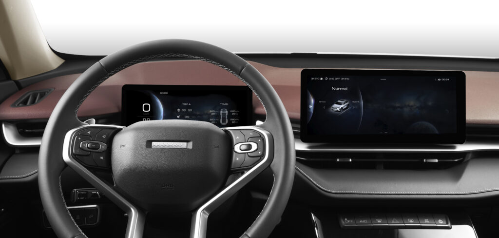 La elegancia está presente en el interior del habitáculo con espacio para 5 adultos, donde se destacan materiales de la más alta calidad, amigables con el medioambiente y terminaciones de primer nivel, que armonizan a la perfección con el equipamiento tecnológico que equipa al nuevo H6 GT y elevan el viaje de este SUV a nuevos niveles de comodidad y sofisticación. El techo panorámico corredizo eléctricamente y con sistema anti-pellizco de 1.2 mt2 admite la apertura de modo dual y mejora la comodidad de la cabina y a la vez, da mayor sensación de libertad. También cuenta con luz de ambiente de un solo color y luz trasera en el baúl. Dentro del equipamiento, se destacan la interface única con interacción con las dos pantallas, una touchscreen de 10,25” que reemplaza el panel de instrumentos, además de una central multitáctil de colores de 12,3” ubicada en la consola central que reúne el sistema de infoentretenimiento compatible con Car Play y Android Auto, con enlace manos libres Bluetooth, USB frontal con transmisión de datos y USB trasero. Además de computadora de a bordo, trae el sistema W-HUD mediante el cual el tablero de instrumentos se proyecta virtualmente en el parabrisas y el brillo de los instrumentos es ajustable. El sistema de audio trae 4 altavoces de tono alto más 4 altavoces de tono bajo y DTS con volumen ajustable automáticamente, según velocidad del vehículo. Esta nueva versión trae el mismo sistema de carga inalámbrica para celulares que la 3era generación de H6, para conectar smartphones en forma rápida, efectiva y segura al eliminar el uso de cables. El volante multifunción tiene un diseño deportivo, está forrado en cuero y ajustable en 4 direcciones. Para dar una mayor amplitud al habitáculo, se eliminó la palanca de cambios por un selector de marcha e incorpora levas al volante, espacios portaobjetos y superficies que combinan pequeños detalles cromados. Los asientos tapizados en cuero ecológico negro con proceso de costura doble del tipo francés dan la sensación de viajar en primera clase. Los apliques de pana y el logo GT bordado tanto en los asientos delanteros como traseros les dan un look deportivo. El asiento del conductor es ajustable electrónicamente en 6 direcciones, con ajuste lumbar bidireccional, mientras que el asiento del acompañante es también ajustable eléctricamente en 4 direcciones y ambos son calefaccionados y ventilados, y tienen apoyacabezas activos. Los asientos traseros son ajustables manualmente en 2 posiciones y abatibles 60:40 y traen apoyacabeza central trasero y apoyabrazos central con portavasos. El H6GT así como el H6, tienen varios avances tecnológicos enfocados en mejorar aún más el confort de los ocupantes como el portón trasero inteligente con apertura fácil desde el interior con cierre retardado, función memoria y posee un sensor de apertura por proximidad desde el exterior, cubierta de maletero, llave inteligente y sistema de entrada sin llave, botón de arranque Start and Stop y freno de mano eléctrico. Asimismo, incluye climatizador bi-zona y salidas de aire en los asientos traseros. Dentro de los avances tecnológicos tiene AQS, un sistema de gestión de la calidad del aire y un purificador de aire con iones negativos, permitiendo ingresar un aire más limpio para el cuidado de la salud de los pasajeros. Posee indicador de temperatura exterior. Completan el equipamiento, desempañador automático en parabrisas delantero, parasol con espejo de cortesía con luz, luces de techo laterales, toma corrientes frontales de 12 V y en la cabina de equipaje otra toma de 12 V y cubierta de equipaje para mayor seguridad.