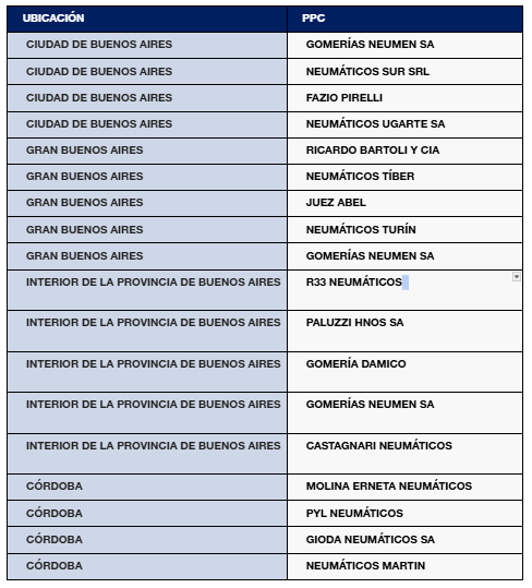 Estos son los Pirelli Performance Center que Ofrecen la Promo: