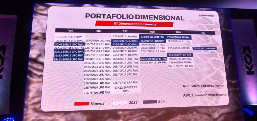 Además de sus avances técnicos, el BFGoodrich All-Terrain T/A KO3 resuelve necesidades concretas para dos tipos de consumidores con deseos y expectativas diferentes. Por un lado, quienes viven, conducen y tienen un estilo de vida más urbano, valoran el diseño, la tecnología y el confort y a su vez buscan las últimas innovaciones que les brinden seguridad y status. Para ellos, este neumático entrega mayor confort y placer al manejar, seguridad, bajo nivel de ruido y una estética que sobresale. Por otro lado, el KO3 está pensado también para aquellos consumidores con un perfil predominantemente off-road que buscan explorar, superar desafíos y recorrer todo tipo de caminos. El KO3 les ofrecerá durabilidad, robustez, tracción, seguridad en condiciones extremas, resistencia y versatilidad para llegar a todos lados. El BFGoodrich All-Terrain T/A KO3 introduce más de 57 dimensiones, de las cuales 9 serán nuevas en el país. De esa cantidad, más de 40 estarán disponibles en el transcurso de 2025, mientras que las restantes llegarán en 2026. Todas ellas serán compatibles con los principales modelos de camionetas, SUVs y vehículos todo-terreno del mercado argentino, como por ejemplo Toyota Hilux, SW4; Ford Ranger, F-150, Maverick, Bronco; Chevrolet S-10, Trailblazer, Silverado; Fiat Toro; RAM Rampage; Jeep Wrangler, Volkswagen Amarok, Nissan Frontirer y muchos más. Este neumático está disponible en los puntos de venta de la red Michelin. “Con este lanzamiento, BFGoodrich refuerza su posicionamiento como referente en el segmento All-Terrain, ofreciendo un producto que responde a las nuevas expectativas de cualquier tipo de consumidor: más durabilidad, más robustez, más tracción, más diseño con una identidad clara, alineada con la pasión por la aventura” sostuvo Spinazzola.