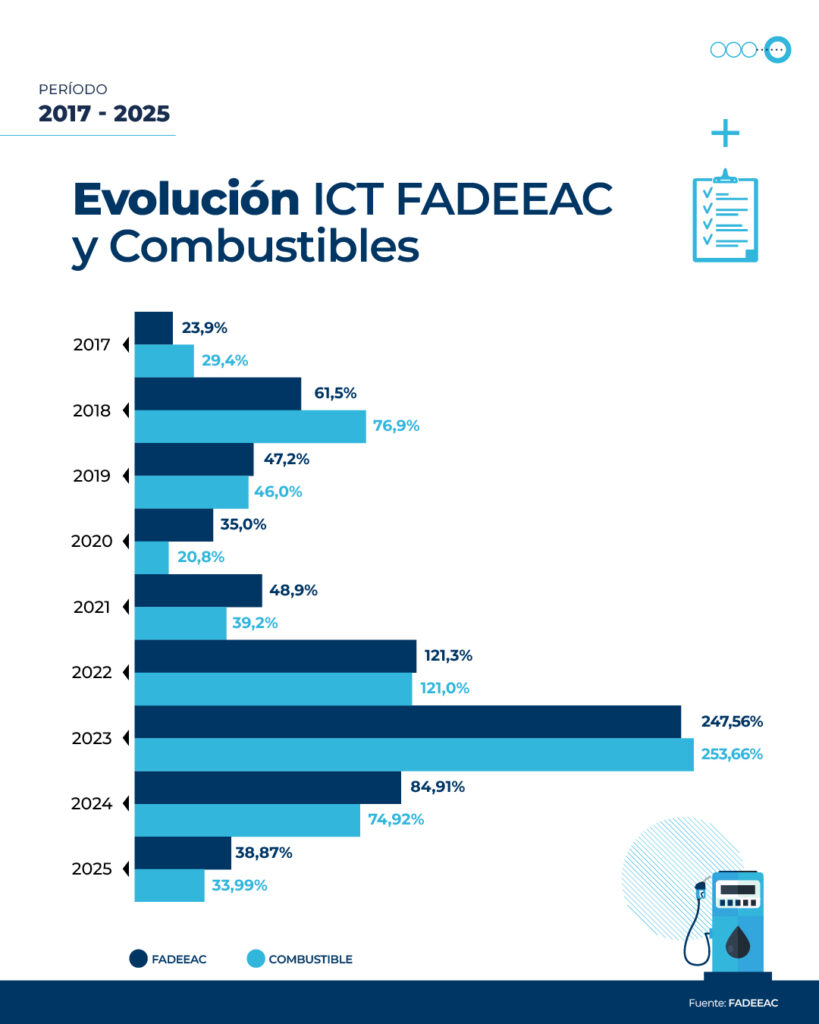 El Índice de Costos del Transporte (ICT), elaborado por la Federación Argentina de Entidades Empresarias del Autotransporte de Cargas (FADEEAC) y auditado por la Facultad de Ciencias Económicas de la UBA, registró en noviembre un incremento mensual de 2,65%, en línea con la tendencia alcista observada desde julio. Luego de un primer semestre de variaciones moderadas, los costos de transporte comenzaron a acelerarse en la segunda parte del año, con aumentos de 4,03% en julio, 3,54% en agosto, 2,92% en septiembre y 3,27% en octubre. En noviembre, el ICT volvió a escalar impulsado principalmente por el fuerte incremento del Combustible, que registró su suba más alta del año: 7,3%. Con este resultado, el ICT acumula un aumento de 34% entre enero y noviembre de 2025, mientras que la variación interanual asciende a 36,3%, superando en más de 8 puntos la última proyección de inflación del FMI para Argentina (28%). El estudio, elaborado por el Departamento de Estudios Económicos y Costos de FADEEAC, mide 11 rubros que impactan directamente en la estructura de costos de las empresas de transporte de cargas de todo el país y constituye una referencia clave para la definición y actualización de tarifas en el sector. El rubro Combustible, de mayor incidencia en la actividad, exhibió en noviembre una suba de 7,3%, alcanzando tanto al segmento minorista como mayorista. Con incrementos aplicados al menos en tres oportunidades durante el mes en el canal minorista, el gasoil acumula una suba de 39% en lo que va del año y casi 30% en los últimos seis meses. A pesar de este comportamiento, volvió a diferirse la aplicación plena de los impuestos específicos a los combustibles (Decreto 782/25), un esquema iniciado en mayo de 2024 y nuevamente prorrogado para diciembre por Decreto 840/25. Además del significativo incremento en Combustible, la mayor parte de los rubros mostró aumentos, aunque en niveles más acotados. En primer lugar, se encuentran Reparaciones (1,95%), Gastos Generales (1,80%), Seguros (1,09%), Material Rodante (1,08%) y Neumáticos (1,03%). Luego siguen Personal – Conducción (1%), correspondiente a la tercera cuota del CCT 40/89, con actualizaciones mensuales hasta febrero de 2026, y Peajes (0,22%). Para finalizar, Lubricantes y Patentes no registraron variaciones (ajuste anual), mientras que el Costo Financiero exhibió una baja del 7,41%, en un contexto de reducción de tasas de interés.